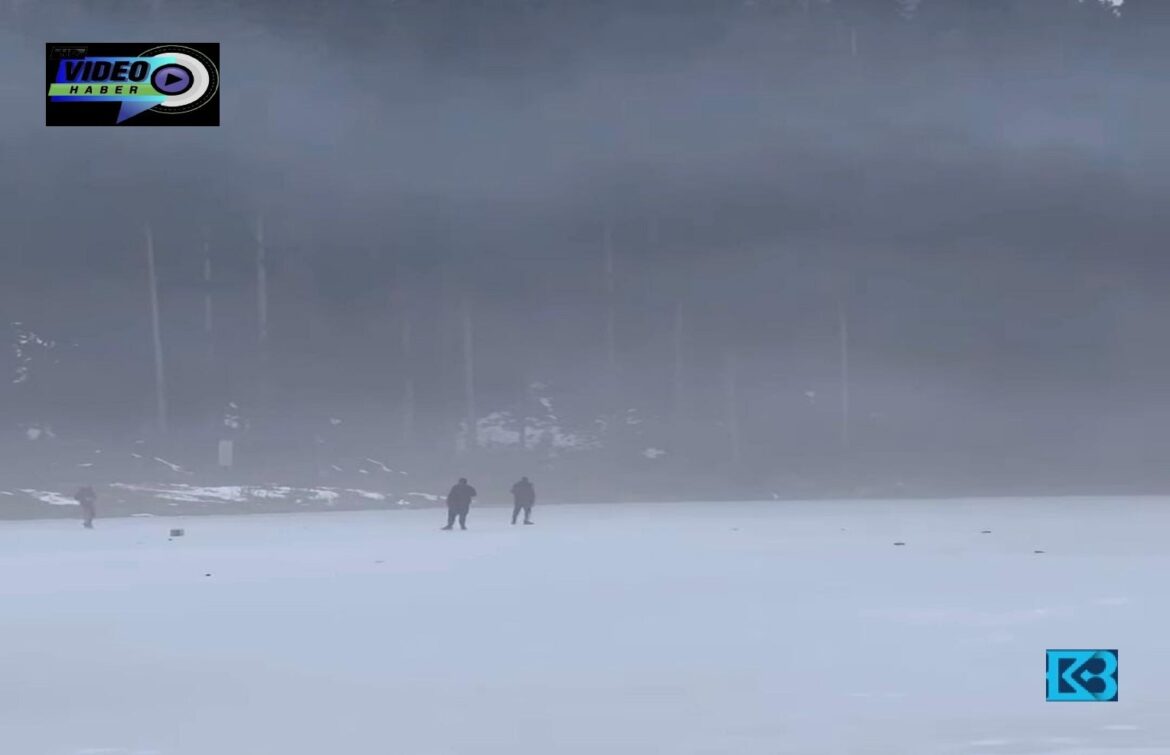 Karabük’te soğuk hava göletleri dondurdu, vatandaşlar tehlikeye rağmen üzerine çıkıp yürüyüş yaptı.
