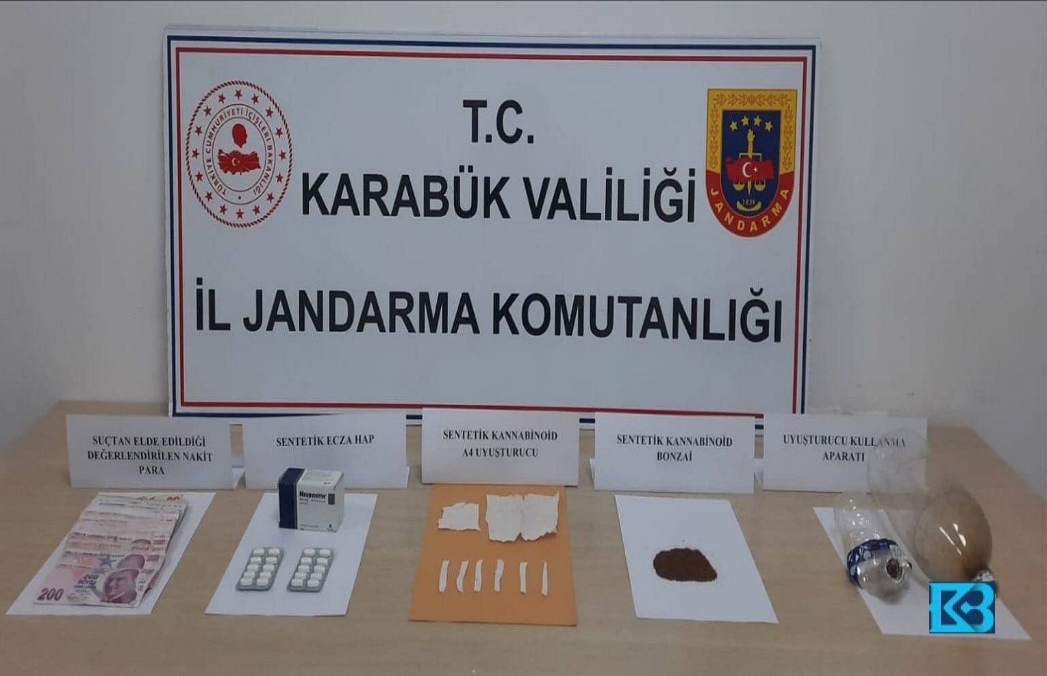 Edinilen bilgiye göre, Karabük İl Jandarma Komutanlığıekipleri tarafından il merkezinde yapılan operasyonda 2 şahsın üzerinde, aracında ve ikametinde yapılan aramada,15 adet çeşitli ebatlarda uyuşturucu madde emdirilmiş kâğıt ve 8,90 gram sentetik kannabinoid bonzai maddesi ele geçirildi.