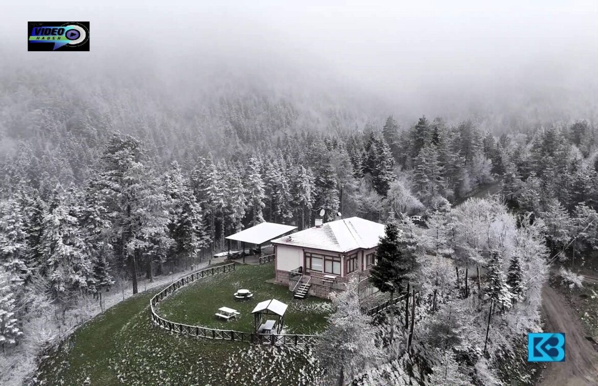 Karabük’ün yüksek kesimlerinde Nisan ayında etkili olan kar yağışı sonrası beyaz örtüyle kaplanan ormanlar dron ile görüntülendi.