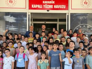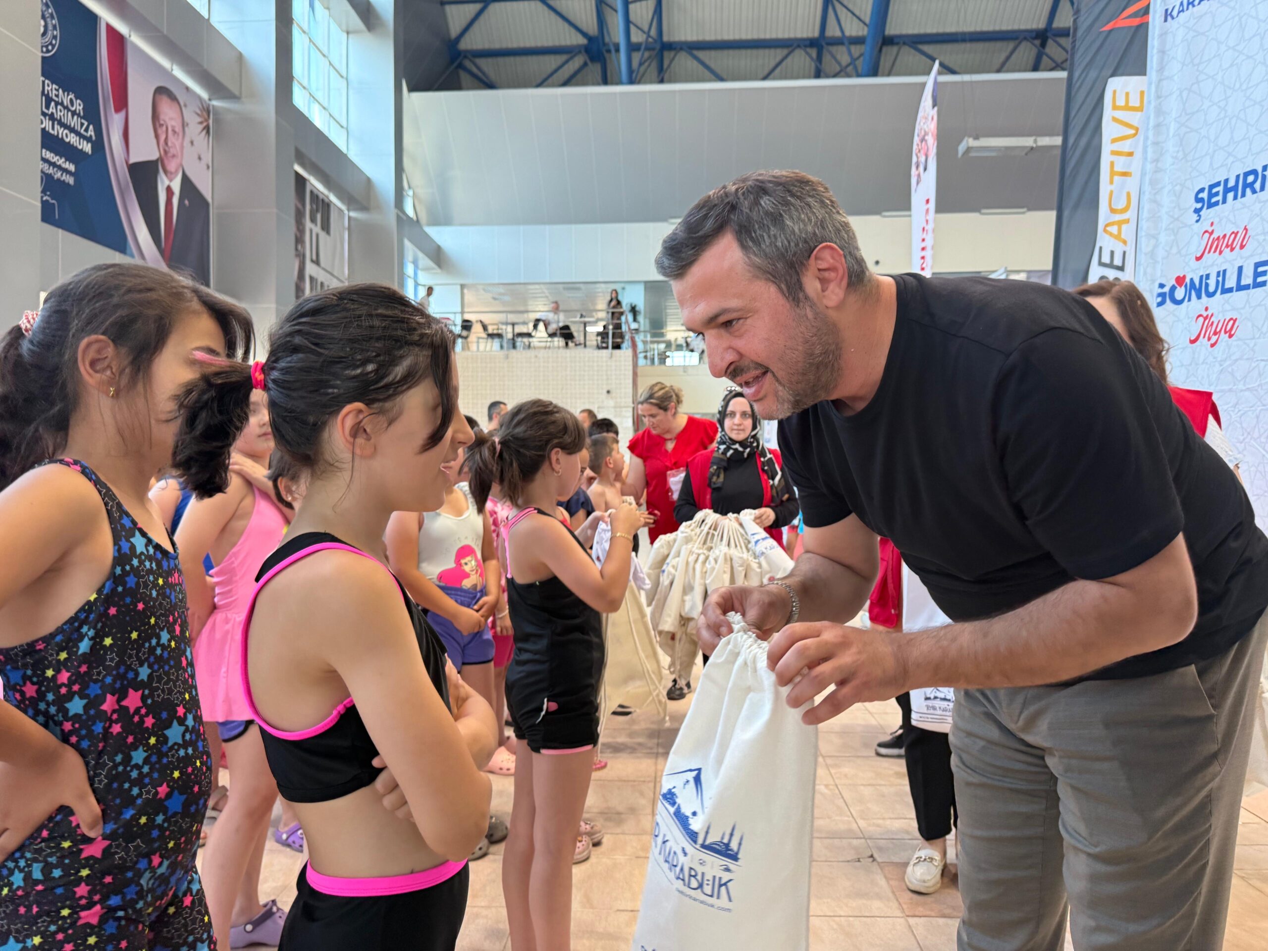 Karabük Belediye Başkanı Özkan Çetinkaya’nın öncülüğünde geçtiğimiz yıl başlatılan ve büyük ilgi gören yüzme kursları, bu yaz döneminde de çocuklarla buluştu. Karabük Belediyesi ile Karabük Gençlik ve Spor İl Müdürlüğü iş birliğiyle 8-13 yaş arası çocuklara yönelik ücretsiz olarak düzenlenen kursun açılışı, Karabük Belediye Başkanı Özkan Çetinkaya ve Karabük Gençlik ve Spor İl Müdürü Coşkun Güven’in katılımıyla 100. Yıl Olimpik Yüzme Havuzu’nda gerçekleştirildi.