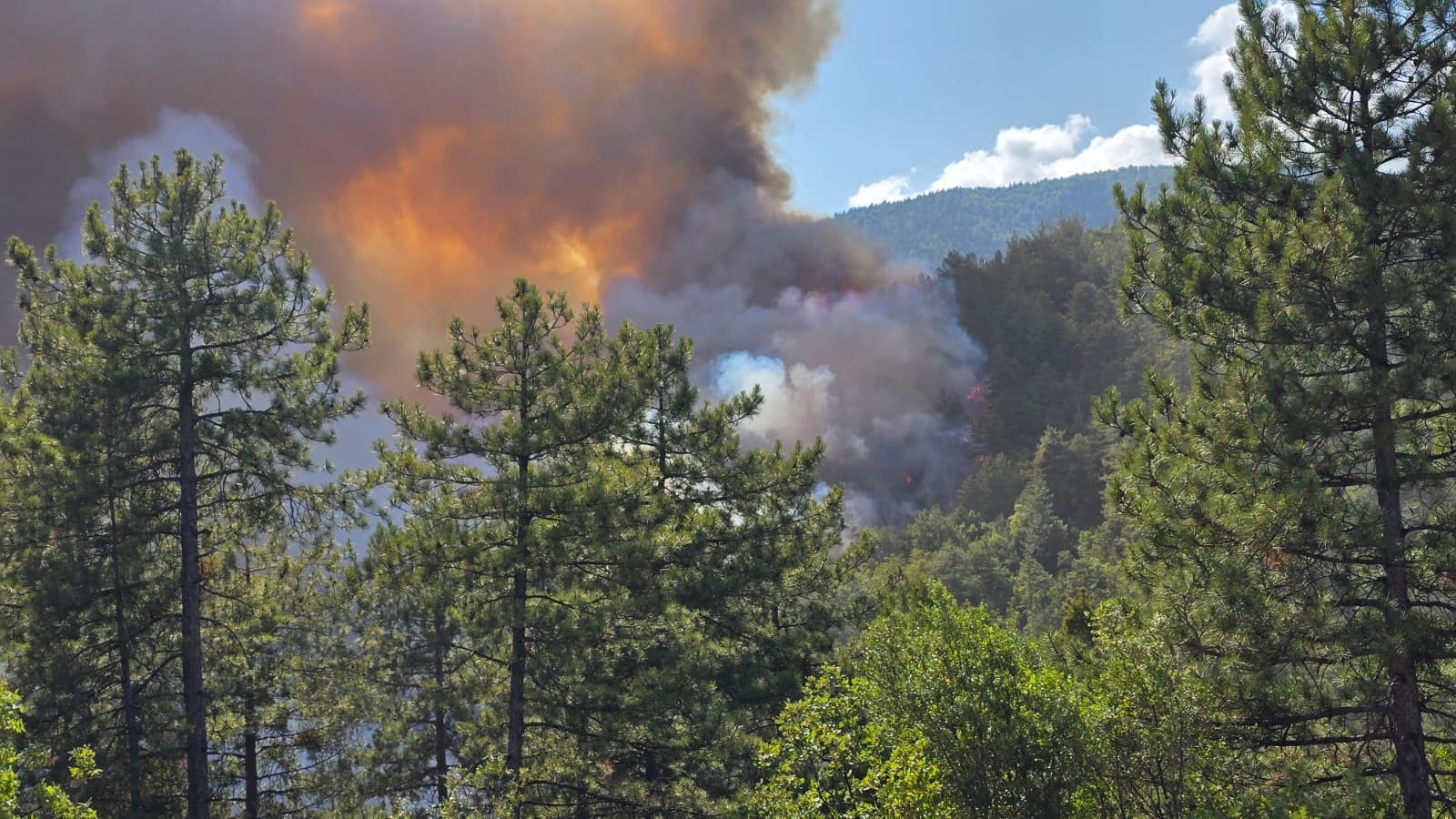 Yangının ilerlemesini durdurmak için iş makineleriyle yol açma çalışmaları yürütülüyor. Alevler, dron ile görüntülenirken, bir yangın söndürme helikopteri de havadan su atarak müdahalede bulunuyor. Yangın söndürme çalışmaları hem karadan hem havadan sürüyor.