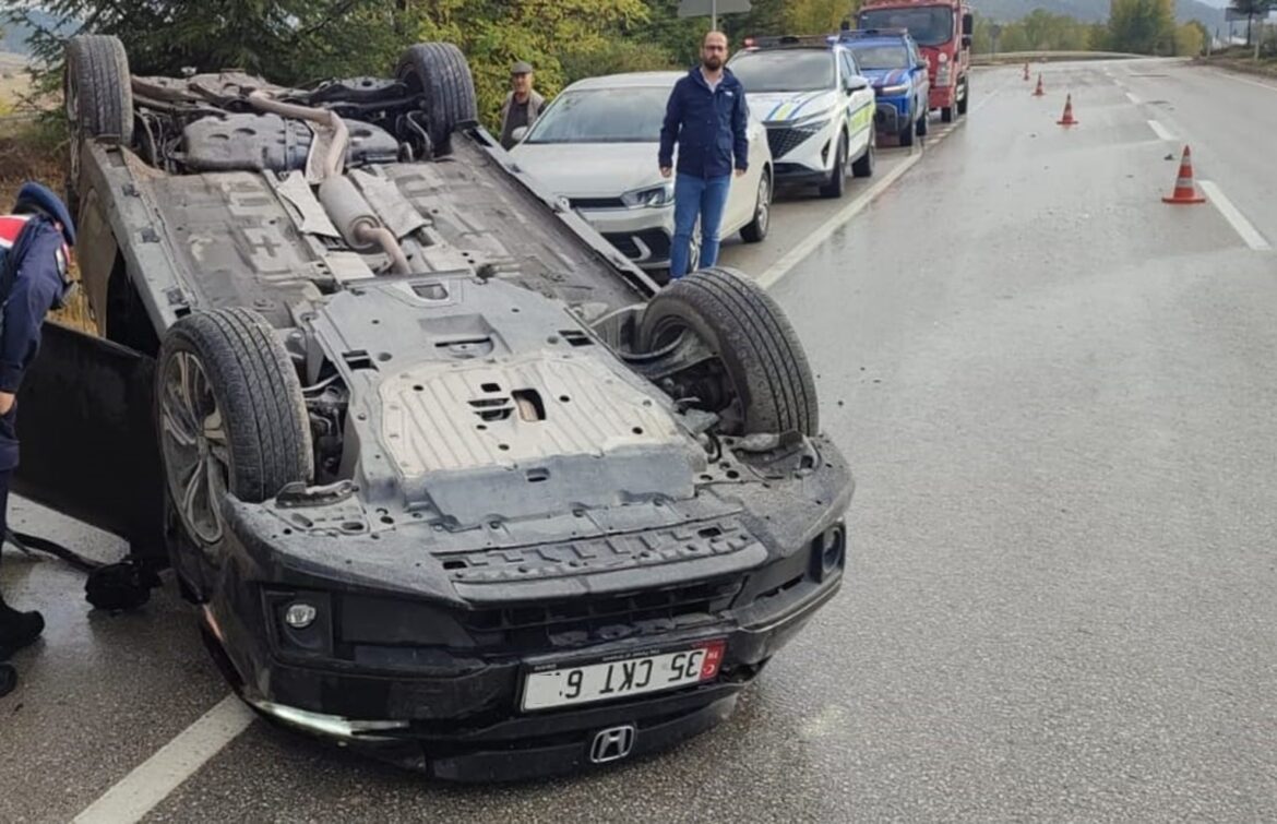 Kaza, Karabük-Gerede karayolu Ortaköy mevkiinde meydana geldi. Gerede ilçesi istikametinden Karabük yönüne seyir halinde olan K.Ç. idaresindeki 35 CKT 612 plakalı otomobil, sürücüsünün direksiyon hakimiyetini kaybetmesi sonucu refüjdeki trafik levhasına çarptı. Çarpmanın etkisiyle savrulan araç, takla atarak durabildi.