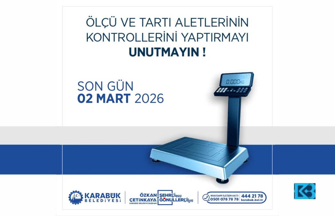 Karabük Belediyesi, esnafın kullanmış olduğu ölçü ve tartı aletlerinin kontrol ve muayenesi için bildirim verilmesi, 3516 sayılı ölçüler ve ayarlar kanuna göre ölçü ve tartı aletlerinin 2 yılda bir yapılan periyodik muayene ve damgalama işlemleri için bildirim verme işlemlerinin başladığını duyurdu.