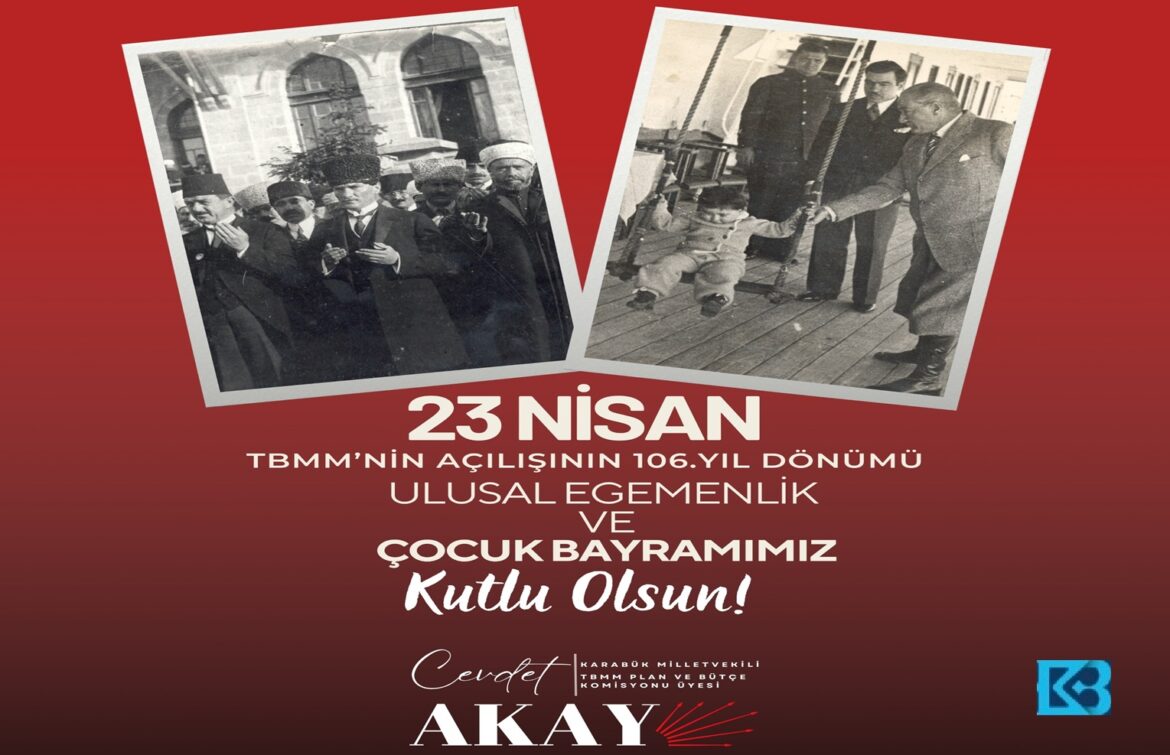 CHP Karabük Milletvekili ve TBMM Plan ve Bütçe Komisyonu Üyesi Cevdet Akay Türkiye Büyük Millet Meclisi’nin Açılışı ile Ulusal Egemenlik ve Çocuk Bayramı dolayısıyla yazılı bir mesaj yayımladı.