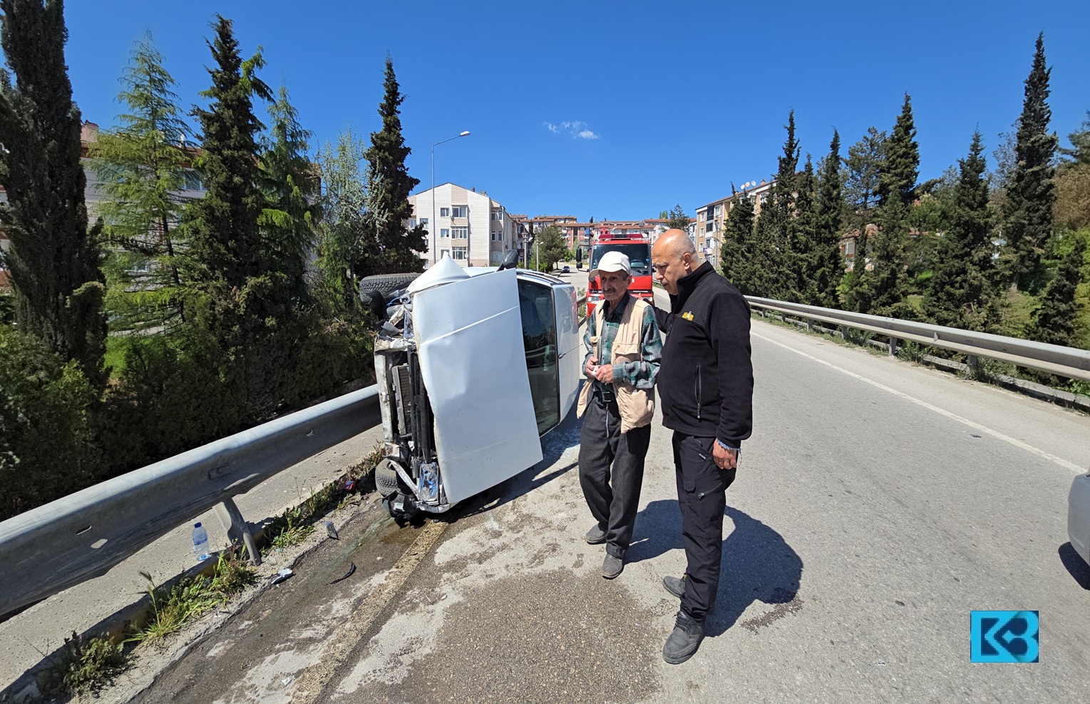 Edinilen bilgiye göre, Mustafa Seyrimez (72) idaresindeki 78 AS 605 plakalı otomobil, Karabük’ten 5000 Evler istikametine seyir halindeyken köprü üzerinde sürücüsünün direksiyon hakimiyetini kaybetmesi sonucu bariyerlere çarparak yan devrildi. Kazayı gören vatandaşların yardımıyla araçtan çıkarılan sürücü, kazayı yara almadan atlattı. Kısa süre olayın şokunu yaşayan Seyrimez’in sağlık durumunun iyi olduğu öğrenildi.